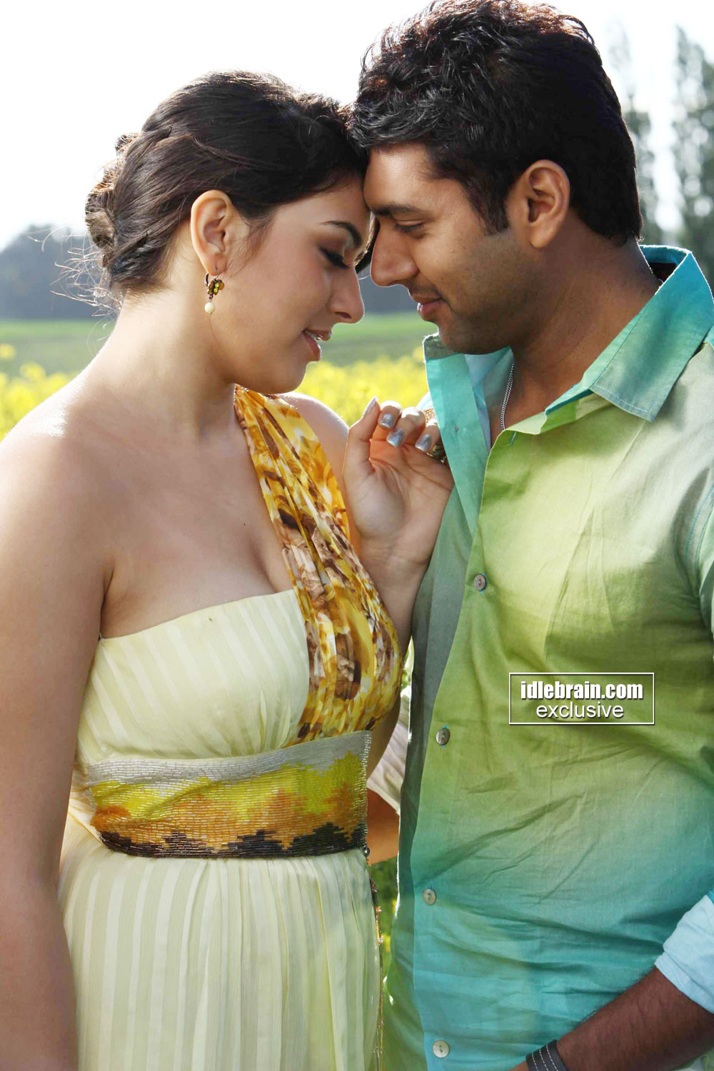 Images of Jayam Ravi and Hansika Motwani in Ninnu Chuste Lovvostundi movie.